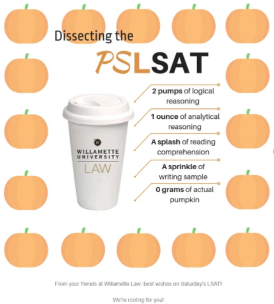 43:55 – Email 4—Both Abigail and Crystal got a total kick out of an encouraging pre-LSAT email from Willamette and wanted to share it with you, dear listeners. But it’s a wonder they could even read the damn thing. The shoddy mix of text, clip art, and randomly colored letters reads more like a puzzle in a Dan Brown novel than something sent from the offices of higher education. Still, the guys unlock this veritable cryptex of an email to find its sweet, autumn-inspired reward.